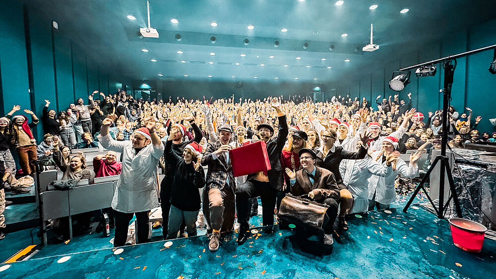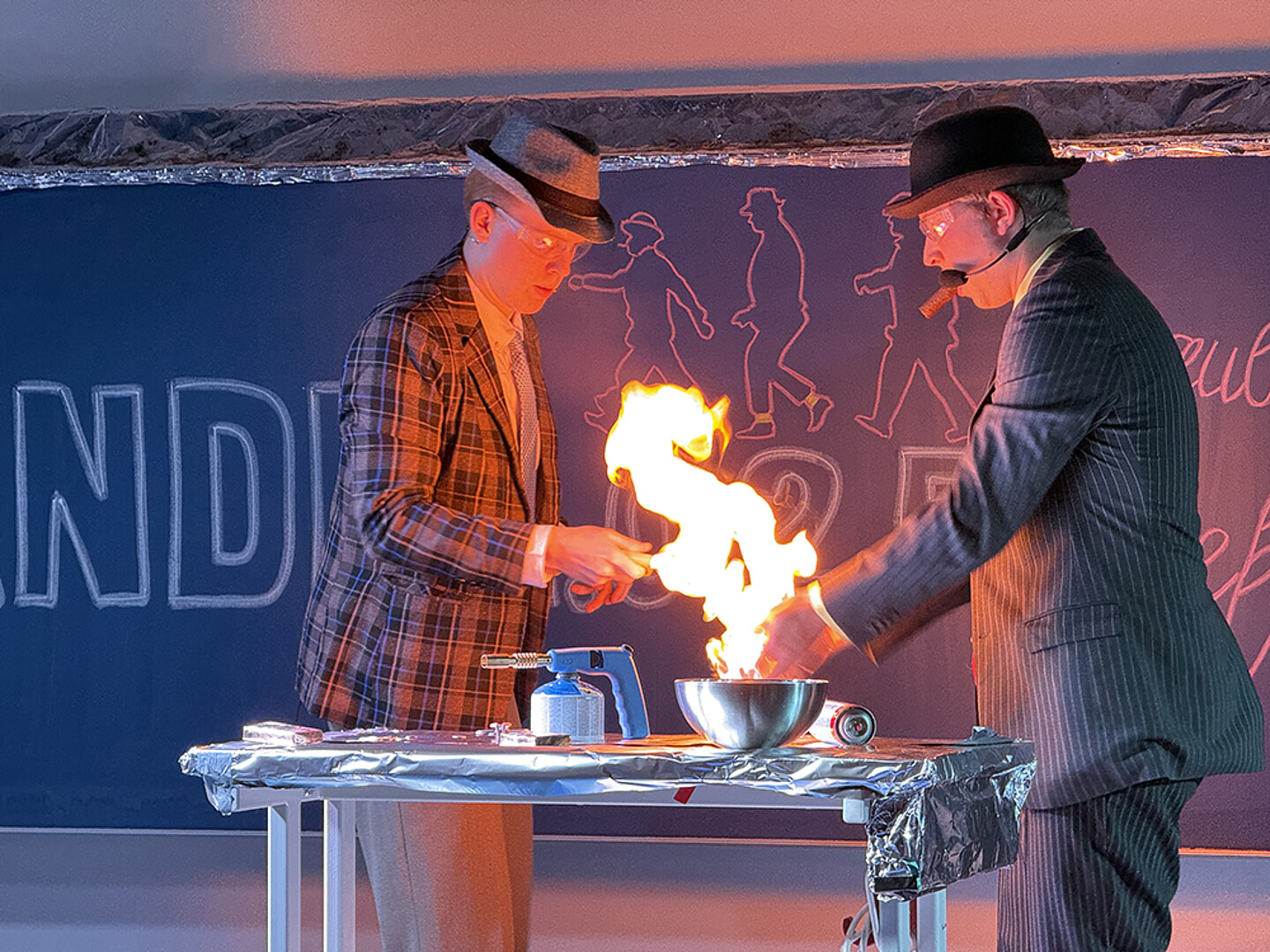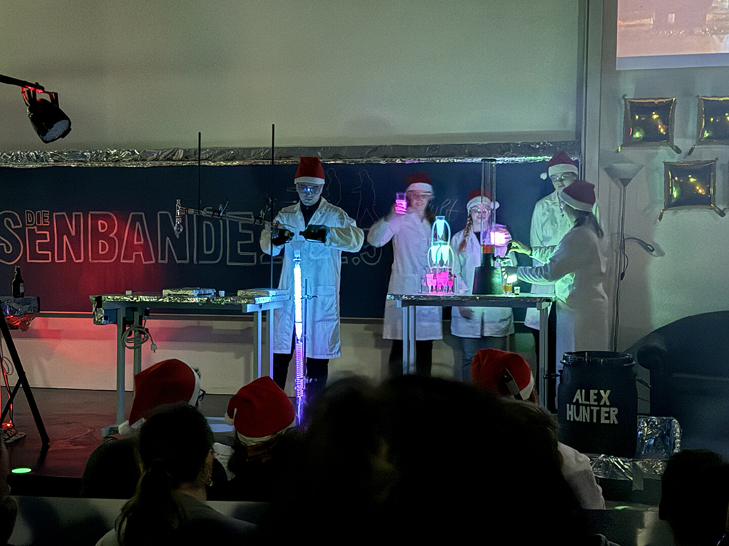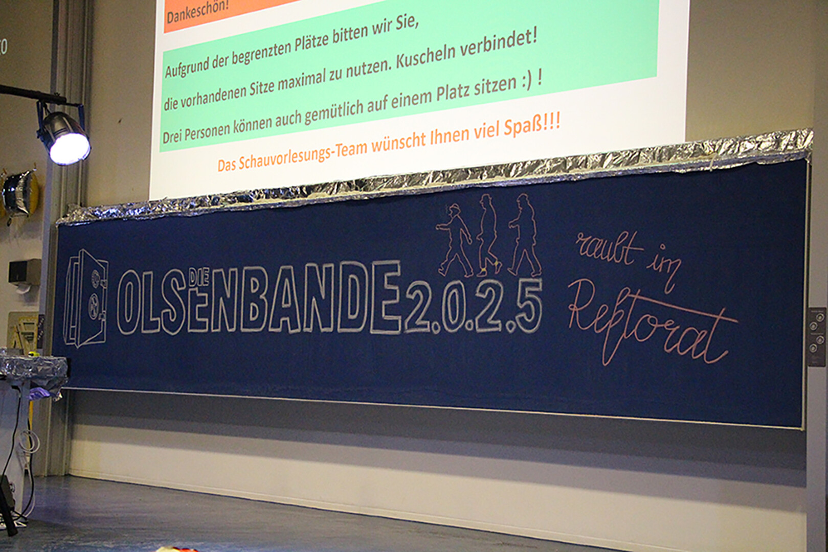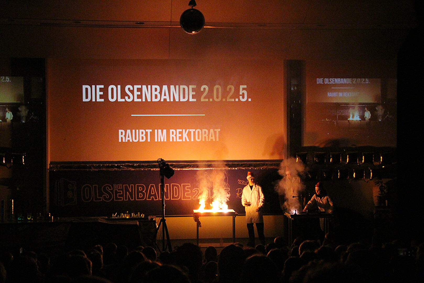 Seit Jahren zählt die Chemieschauvorlesung für Groß und Klein zu den beliebtesten öffentlichen Veranstaltungen der Hochschule. Die Mischung aus Wissenschaft, Theater und Humor zieht ein breites Publikum an. Auch 2025 zeigte sich: Die Olsenbande ist zurück – und die Chemie lebt.