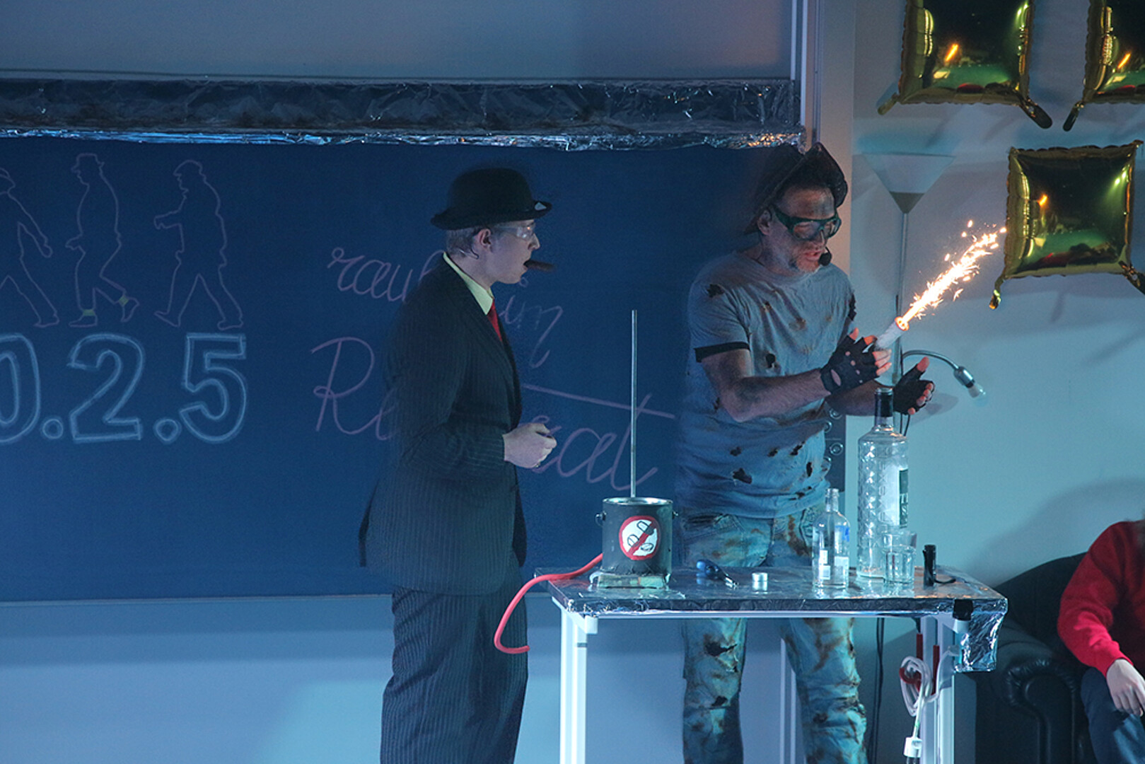 Chemieschauvorlesung begeistert mit Humor, Experimenten und einem spektakulären Comeback.