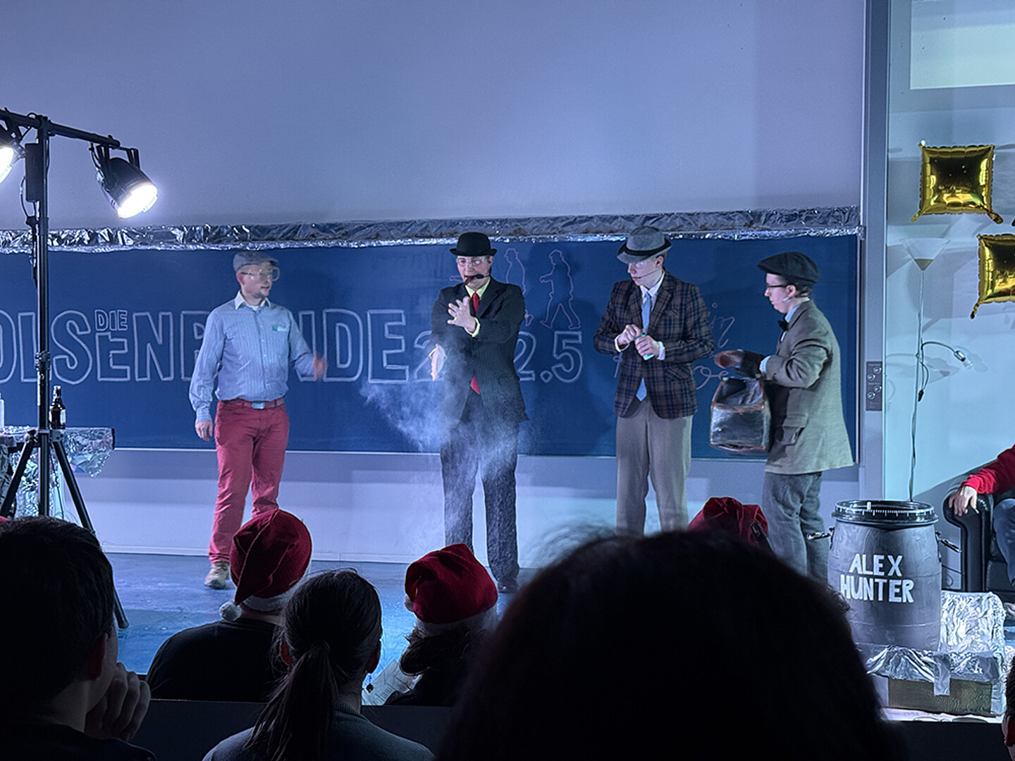 Mit dabei war ein ganz besonderer Gast: Die ehemalige Kanzlerin Karin Hollstein ließ es sich nicht nehmen, persönlich der Olsenbande auf die Spur zu gehen und sich mit dem Rektor auf der Ledercouch bei „Kratzsch und Tratzsch“ zusammenzusetzen.