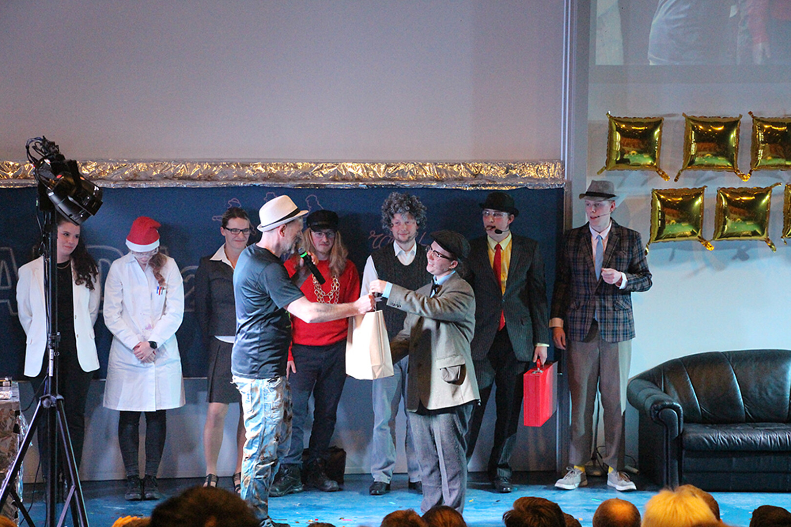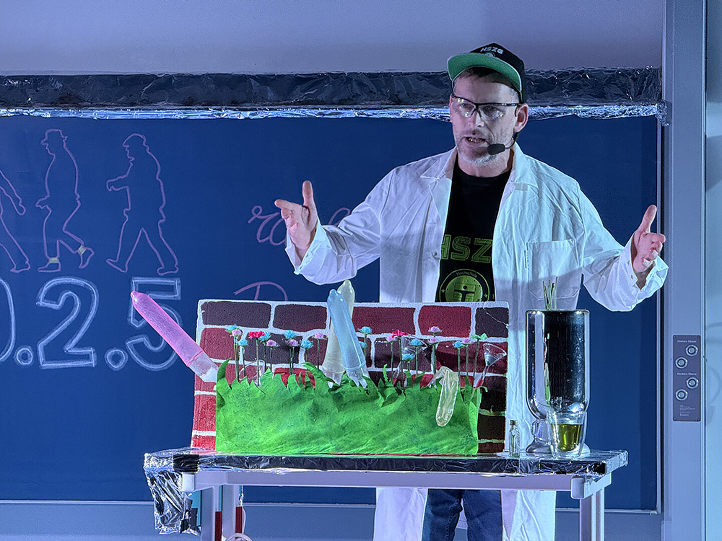 Die Antwort lieferten die Studierenden und Lehrenden der Fakultät Natur- und Umweltwissenschaften in einem fulminanten Bühnenprogramm, das klassische Elemente der beliebten Schauvorlesungen aufgriff und neu inszenierte. Dazu gehörten: