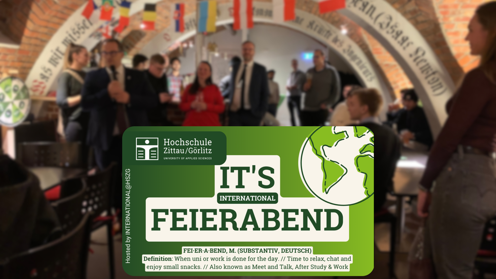 ‚Feierabend‘ ist der Moment, in dem Arbeit und Vorlesungen enden und das echte Miteinander beginnt. Genau das macht unsere familiäre Hochschule aus. Besonders wichtig ist mir heute die Botschaft an unser Studienkolleg: Ihr seid ein fester Teil der HSZG und wir wünschen uns sehr, dass ihr uns auch für das Studium erhalten bleibt. Also nutzt diesen Abend, sprecht bewusst mit Leuten, die ihr noch nicht kennt, und habt gemeinsam eine gute Zeit!