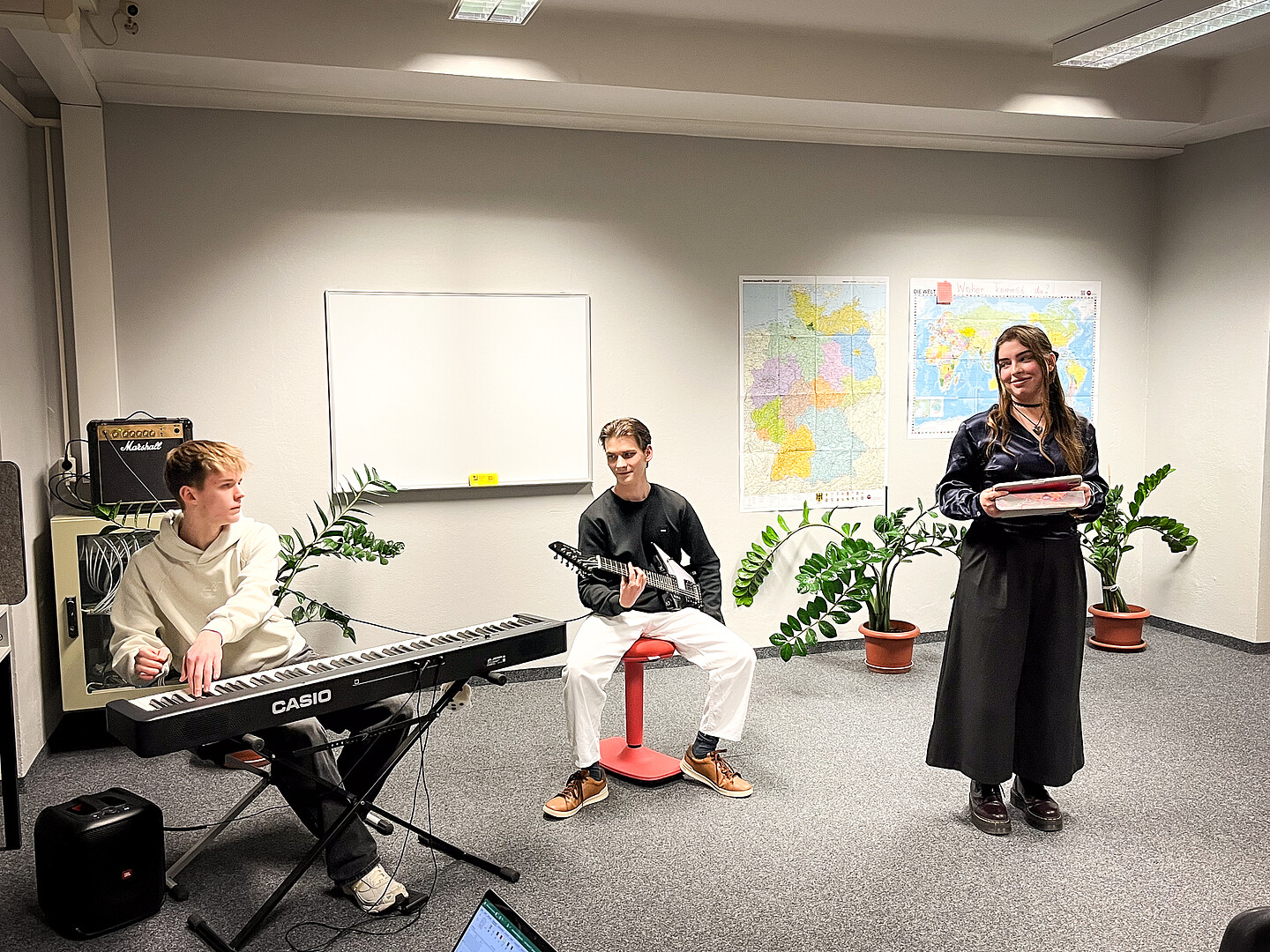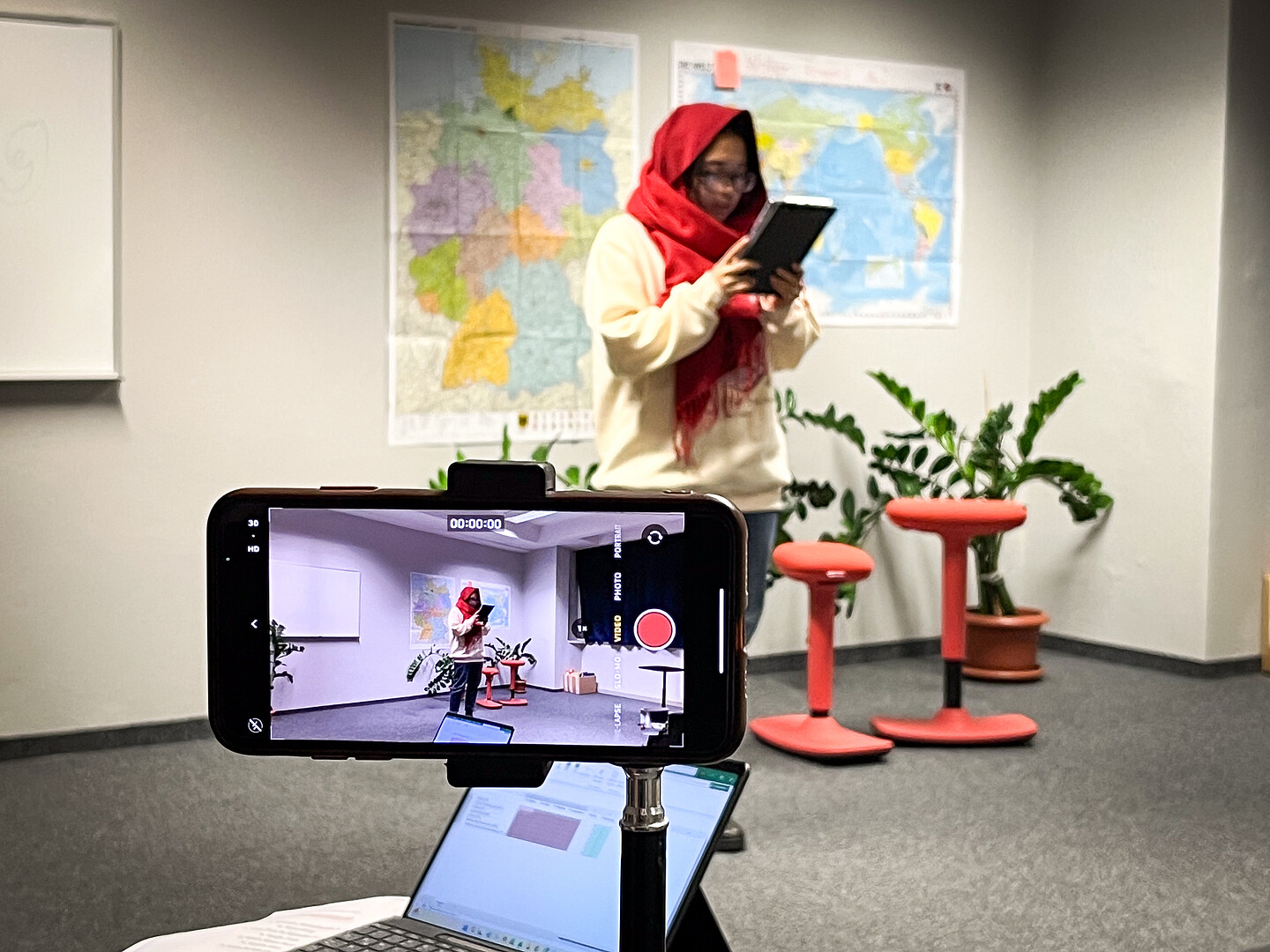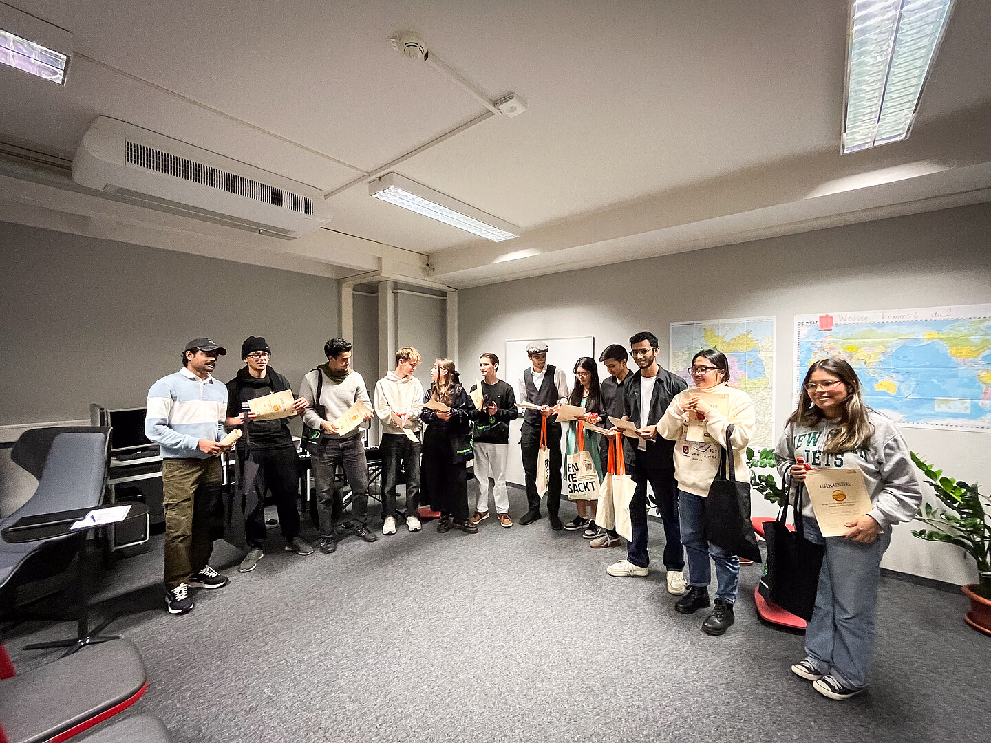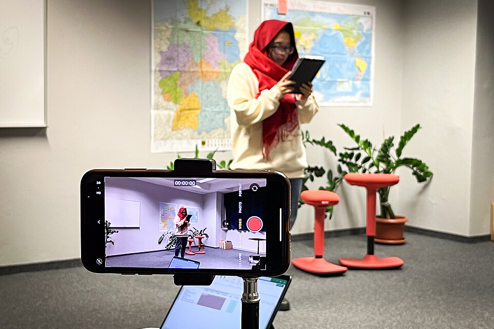 Der Vorlesetag am Studienkolleg wurde in Form eines Wettbewerbs durchgeführt. Unsere Studienkollegiatinnen und -kollegiaten präsentierten ihre Beiträge entweder in Gruppen oder einzeln. Die Teilnehmenden stammen aus verschiedenen Ländern, unter anderem aus Indonesien, Pakistan, der Ukraine und Indien. Mit dem emotionalen Vortragen von Geschichten und eigenen Texten, dem Singen von Weihnachtsliedern sowie der kreativen Präsentation von Legenden sorgten sie für ein abwechslungsreiches Programm.